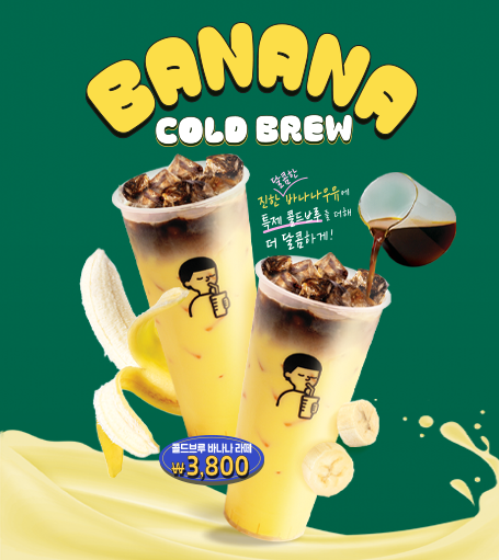 달콤한 바나나라떼 위 부드러운 치즈크림으로 진한 달콤함을 느낄 수 있는 갓성비 음료