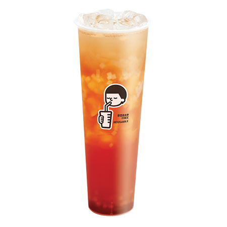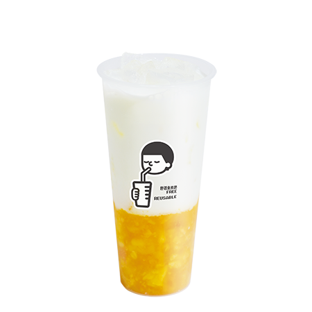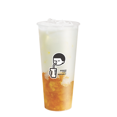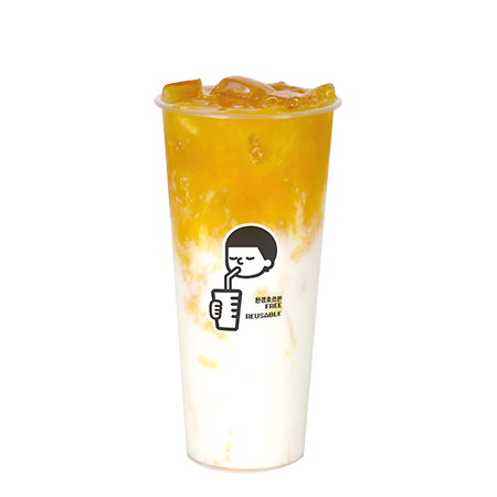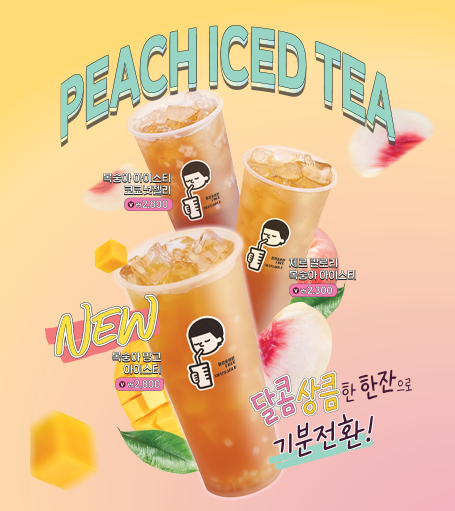 시원한 복숭아 아이스티에 달콤한 망고를 더해 코코넛 젤리와 함께 즐길 수 있는 아이스티