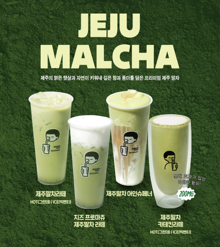 스페셜티를 사용한 진한 카페라떼 위 제주말차크림을 얹어, 부드러우면서 쌉쌀하게 즐기는 프리미엄 음료
