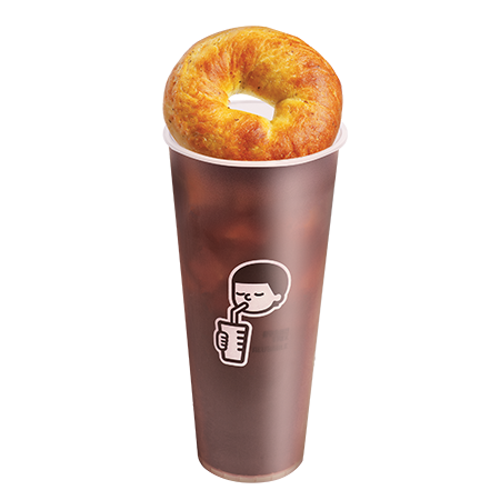 스페셜티 아메리카노 위 쫄깃한 베이글의 조합으로 간단하게 식사대용으로도 즐길 수 있는 컵 디저트