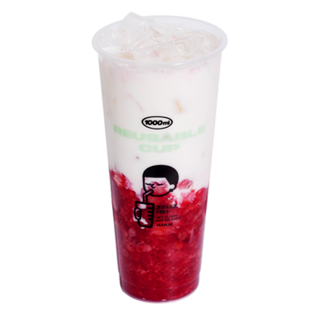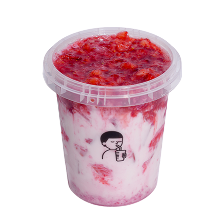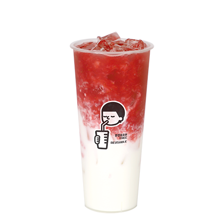 톡톡 씹히는 딸기 과육의 달콤함을 1L 대용량으로 가득 담은 대용량 딸기라떼