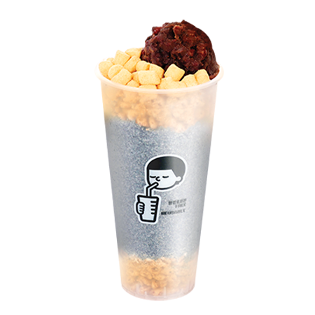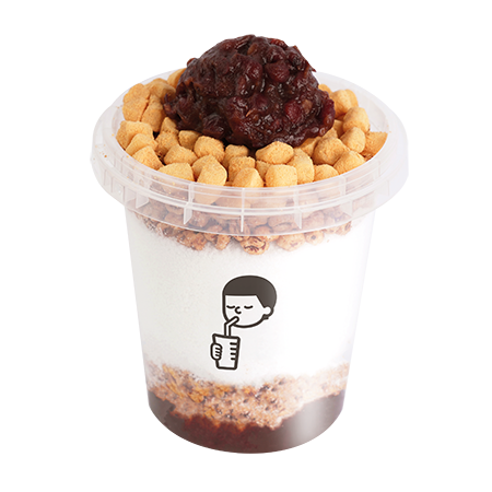 달콤한 우유얼음에 통단팥과 인절미, 조리퐁이 듬뿍! 한 컵으로 즐기는 달콤하고 시원한 컵빙수