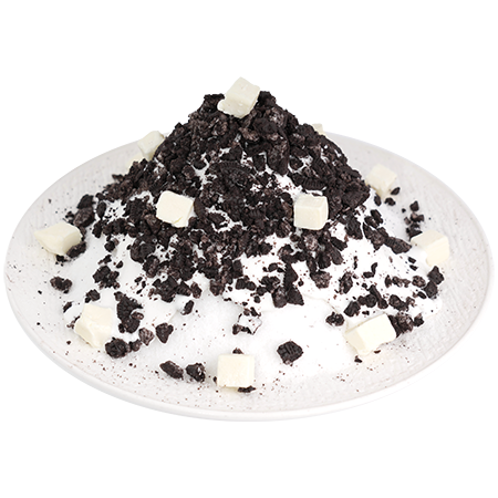 부드러운 우유 얼음에 오레오와 치즈큐브가 가득! 바삭함과 크리미함이 환상 궁합인 오레오 치즈 빙수