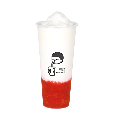 신선한 생딸기 과육과 고소한 우유의 만남! 상큼함을 그대로 담아낸 생딸기 라떼